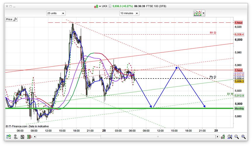 mmmm, sorry tmfp delayed response, cut the -240 already. But I appreciate the insight for your view on the dow so have chopped half off my ftse short at 5952{11.13} for + 432. Will run the other 9 with b/e stop loss at 6000. Cheers