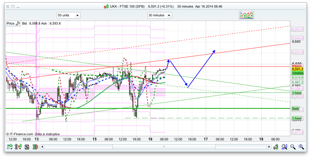 We are currently in a double top with yesterday area at 6587 so a dip from here would make technical sense, bit of a repeat of yesterday in fact. The US might be a bit more optimistic later today as well if they continue yesterdays buying.