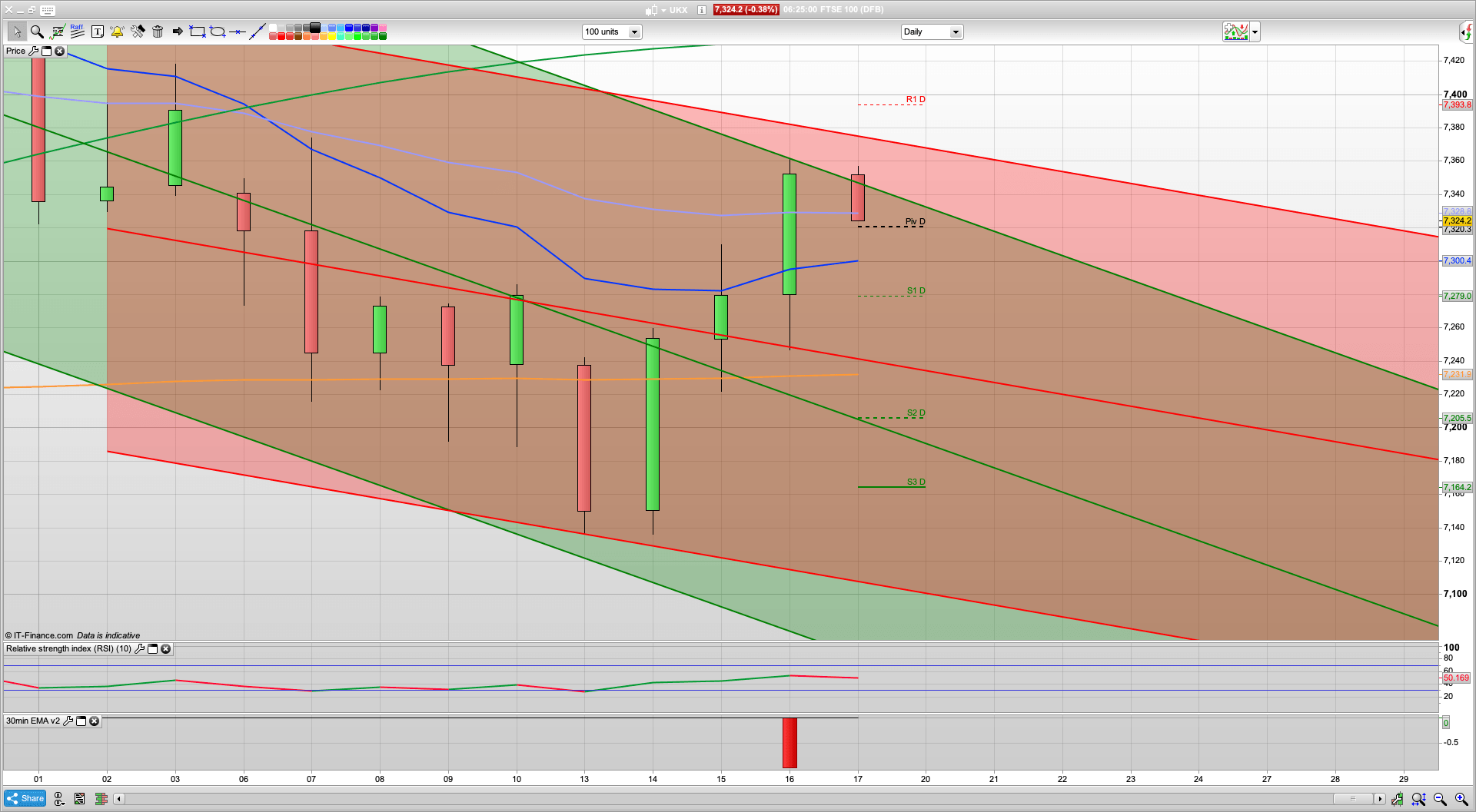 For today I am thinking that the 7318 level will hold initially, as this is daily support and also just below the daily pivot. If it does then we could well be on for a decent rise towards the key daily resistance area at 7375 to 7380. Yesterdays high was also 7362 so the bulls might be keen to retest that. Should they really push on then 7412 is the next key daily resistance above that. I don’t think we will get that high today as the 380 area does look a decent shorting spot for the moment, however do bear it in mind.