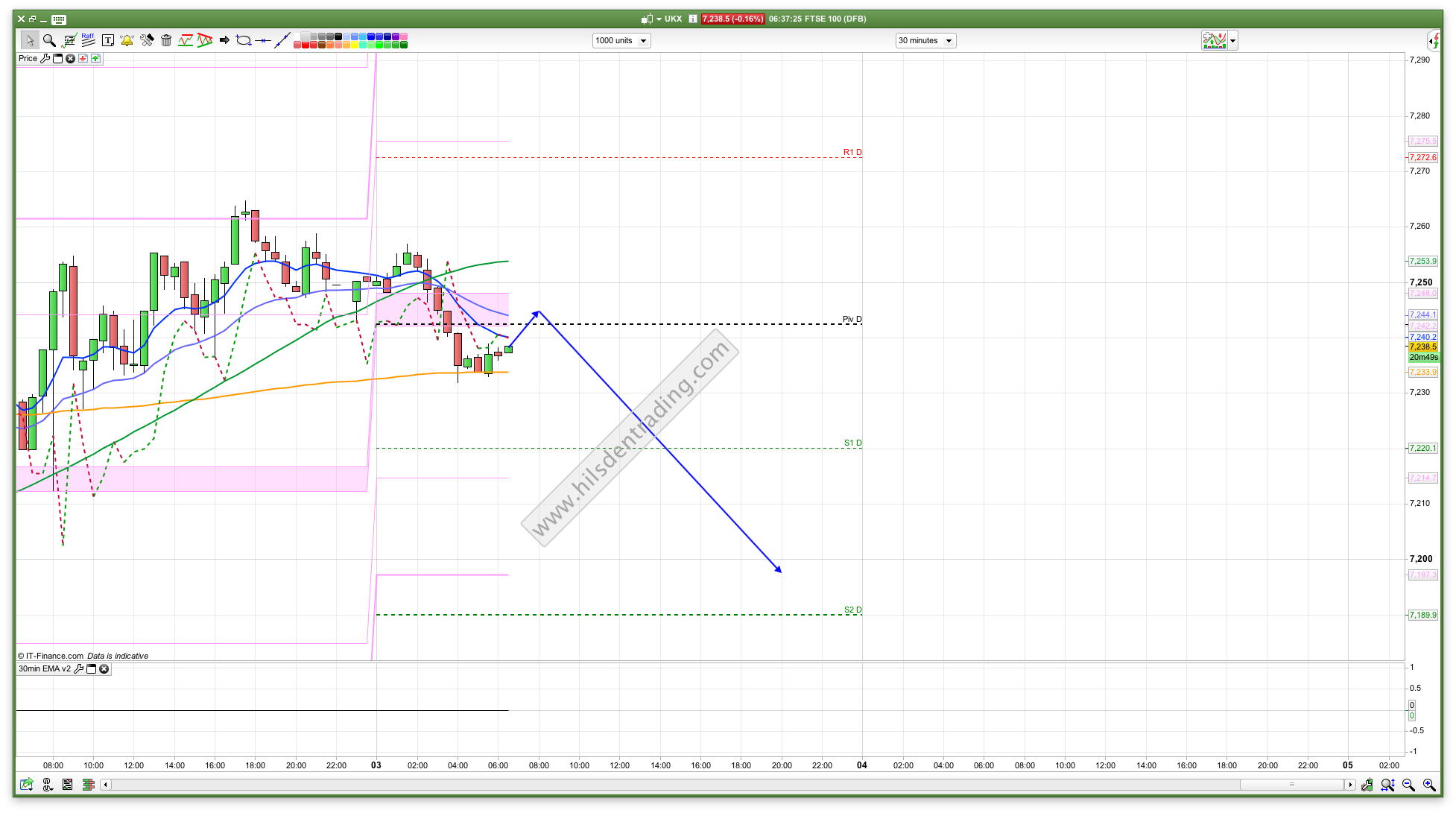 If the bears can break 7223 then we may well be on for a move lower, and the bears will be buoyed by the fact that the 7261 level has remained as resistance. Above this then 7331 is the next level of resistance to look for.