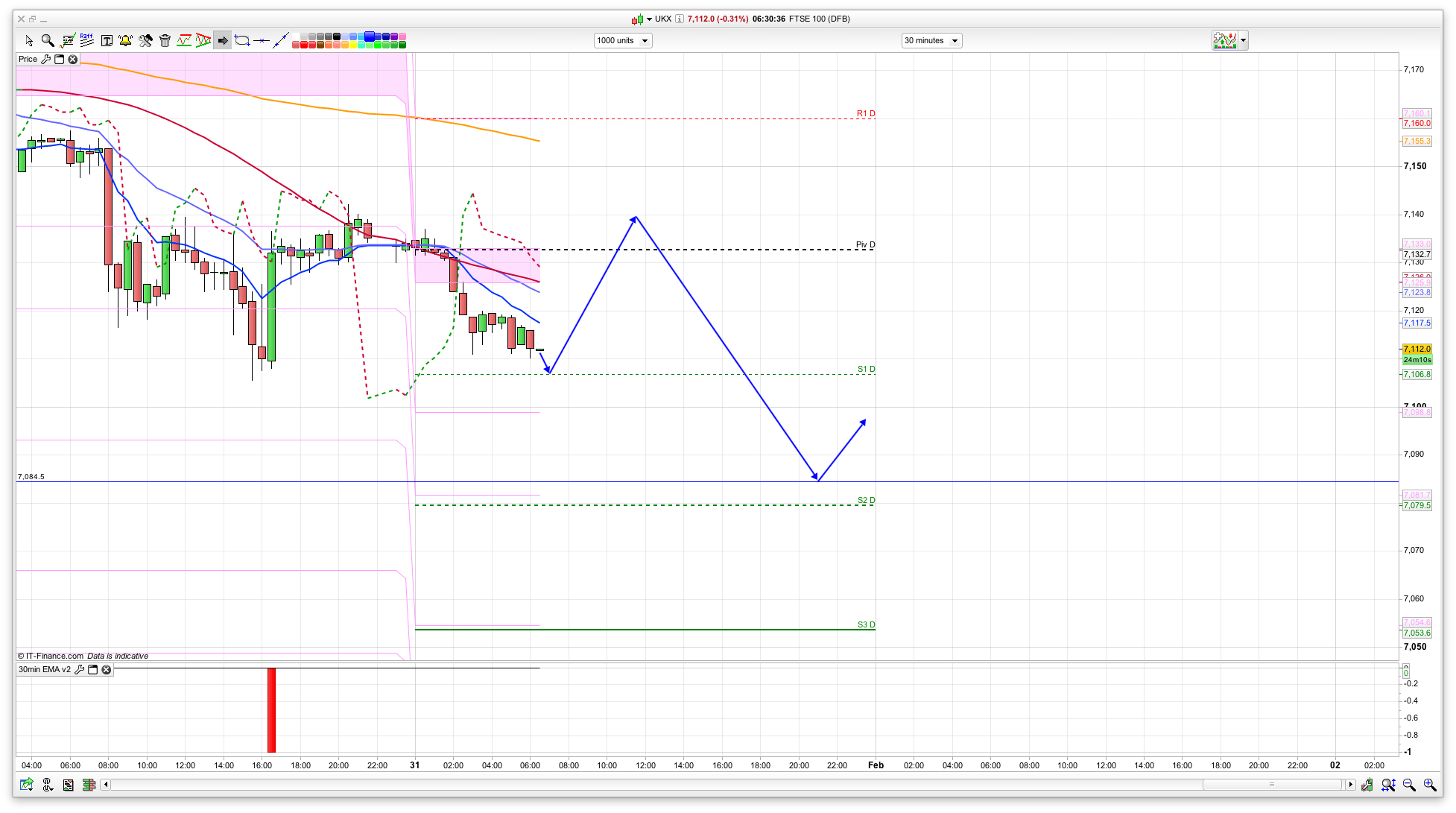 So, for today I am looking at shorting any early morning climb towards 7140 (was looking at entering last night at 7155 before the US closed but it didn’t manage to get there) to target that 7085 level and maybe lower. But, I think 7085 will probably hold as support, certainly on the first test.