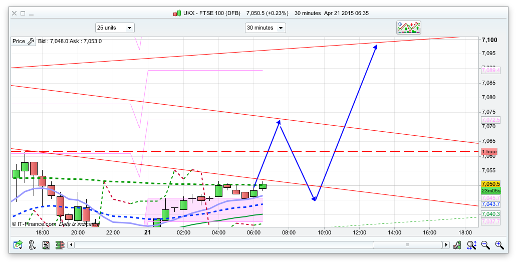 Still in my Dax long and have been hovering on the sell all day. Trying my best to keep it running. Ftse will be range kind until the election I feel so may be good for point grabs between 7,000 and 7,100