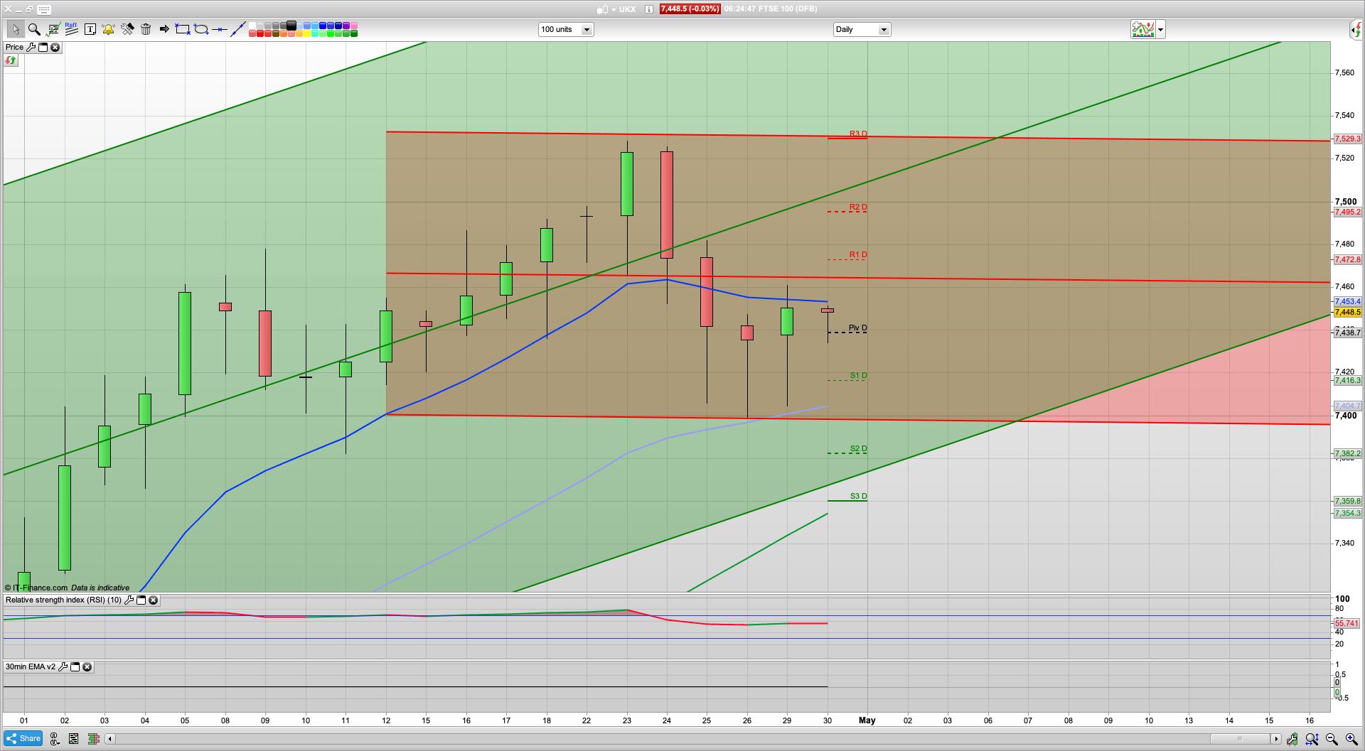 If the bulls were to push on today and break the 7475 resistance level then I am expecting us to climb to the 7530 area where we have some key daily resistance. With R1 and a daily resistance at 7475 I do think that we will see a reaction here though so I have put a short in the trade plan at this level.