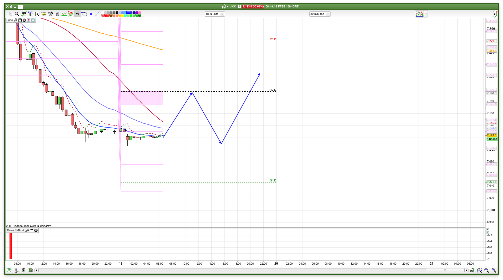 Just half a point left on FTSE to break the morning’s low. Or could it be a temporary long (support)?