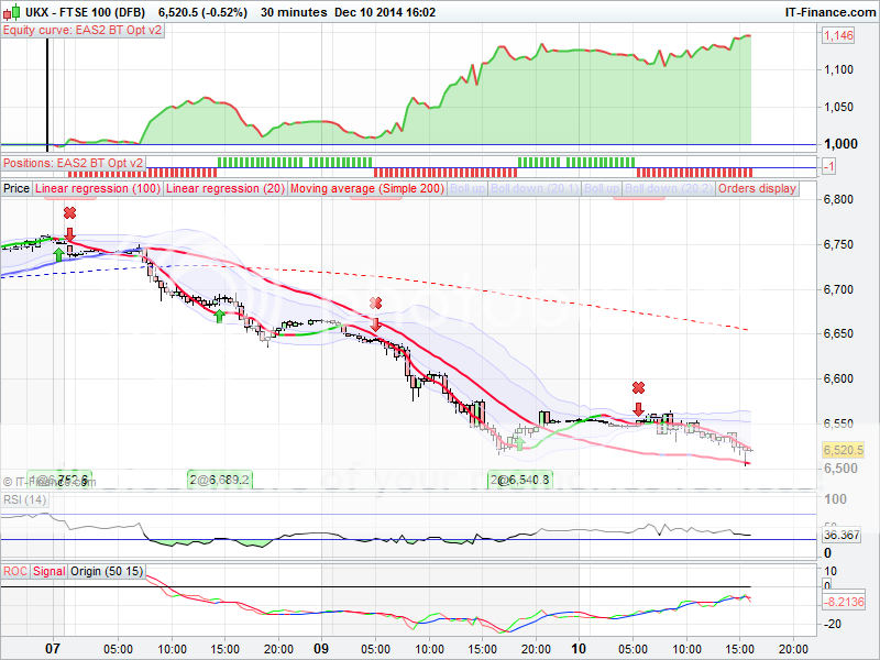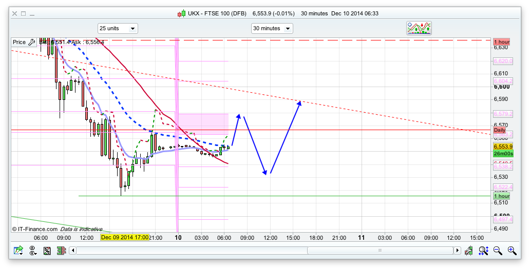 No trades at all today so far! A bit clueless, FTSE mostly sold last few days compared to DAX & DOW and still sitting outside lower Bollinger on daily chart, and still bearish, would like to see a move above 6580 first before buying for Santa rally, to see if we can then later target higher next week, until then vary cautious, as longs stopped out yesterday.