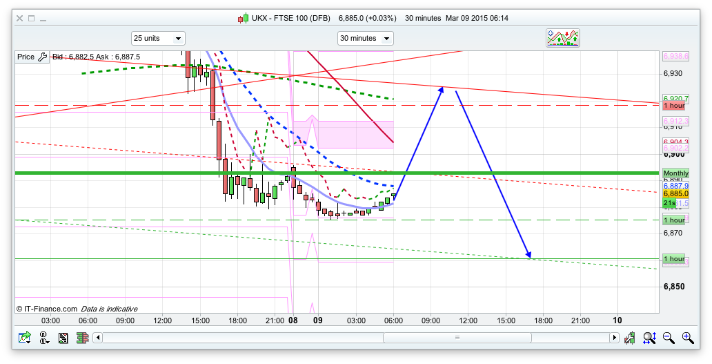 Good morning. Well Friday lived up to the usual pattern! NFP beat estimates by quite a margin showing an improving picture, which spooked the US markets as they wheeled out the fears over earlier interest rate rises again. Good news is bad again! That triggered a downturn in pretty much everything, as profits were taken and shorts entered. Initial support today is 6882, the bottom of the 10 day Bianca so I am thinking we may see an initial rise up to the pivot at 6928 before more downside this week. The US markets looked like they had run out of bull steam last week anyway and it was just the Europeans that were pushing up. Shame the FTSE didn’t manage to test that 6969 level we had pencilled in for the short on Friday though. I feel we are on for a bearish March so short the rallies is probably a good mindset. Since 1984 March has only had an average return of 0.5%, and only risen 5 times since 2001, with the last week typically being the weakest.