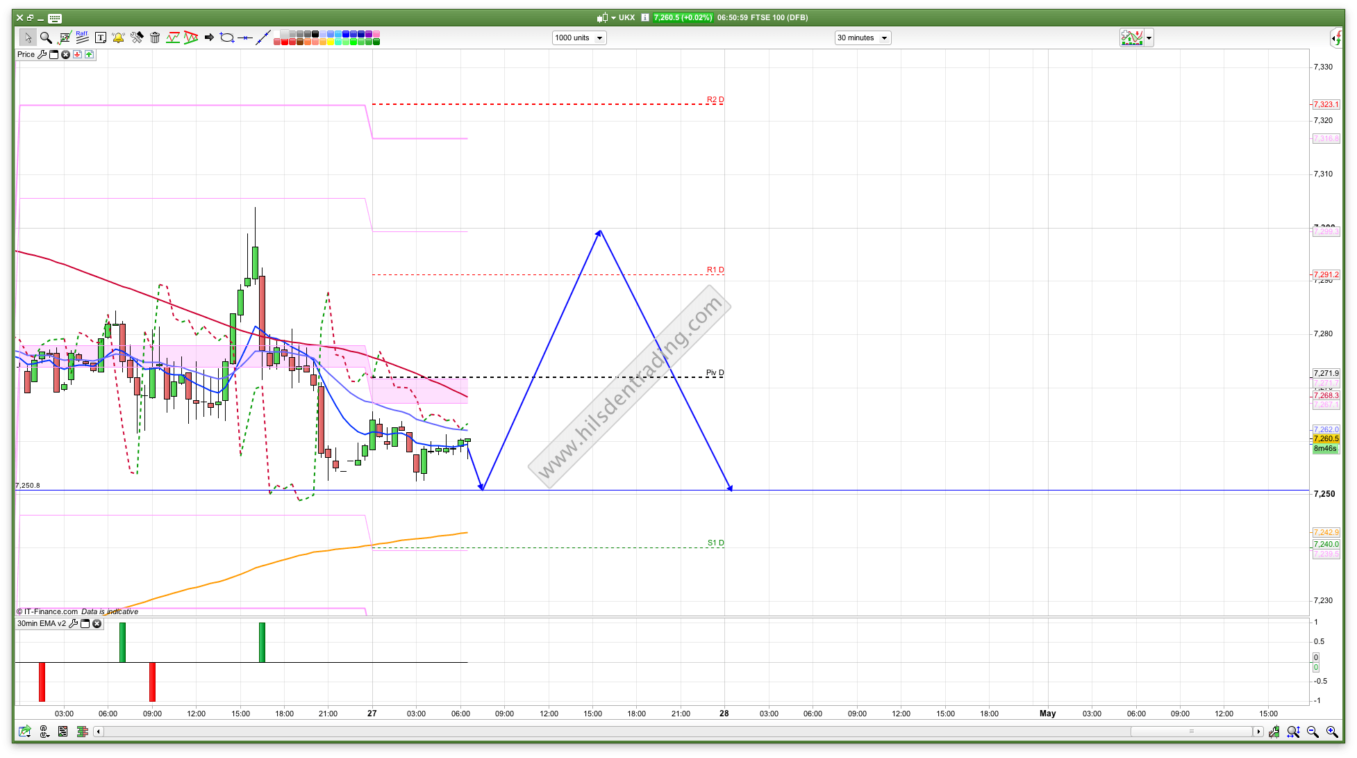 Yes I just wanted to mention you about that double bottom and besides Nick’s large arrow still shows a potential for upthrust (long outburst). That’s what I see on Dax as well. Pivot is at 7284 but it may not get there as much, but the potential for some kind of long is still there. I don’t want to give you a hope but that’s what I would be thinking and tried to defend 7220-30 area for a possibly closing but this if it gets really bad. Basically 7270-7280 would be a blessing, I would close there if it gets there.